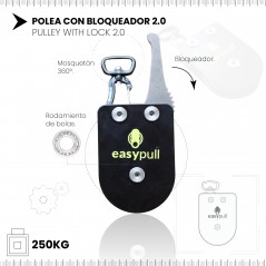 Die Riemenscheibe mit Verriegelungssystem ermöglicht es Ihnen, das Seil in der gewünschten Höhe zu lassen.
