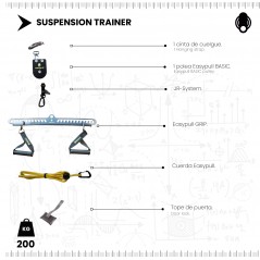 C’est pourquoi nous avons créé Easypull GST, un système d’entraînement en suspension que vous pouvez accrocher dans une structure, sur une porte, etc. et vous permet d’ajuster la longueur en quelques secondes.