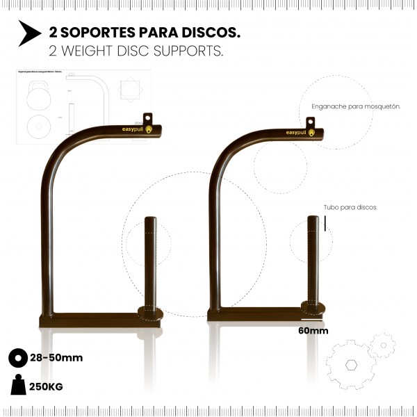 ▶️2 grands supports professionnels de type J (valables pour les disques 28mm, 50mm et kettlebells): Voir vidéo.