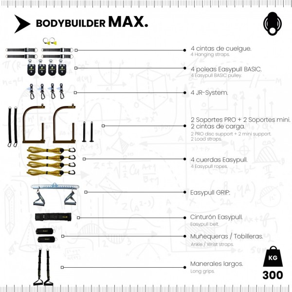 Easypull BodyBuilder MAX est un système portable à quatre poulies, qui peut être adapté à n’importe quelle structure d’entraînement, prend peu de place et vous permet de faire des centaines d’exercices de force e hypertrophie.